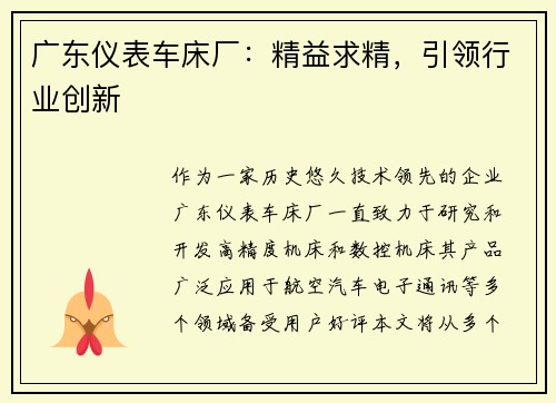 阅读北京凯奇机床有限公司是一家专业从事数控机床研发、生产和销售的企业,秉承“科技创新、品质至上”的理念,致力于为客户提供高品质的机床产品和优质的服务。本文将从产品质量、研发实力、售后服务、市场占有率、企业...
